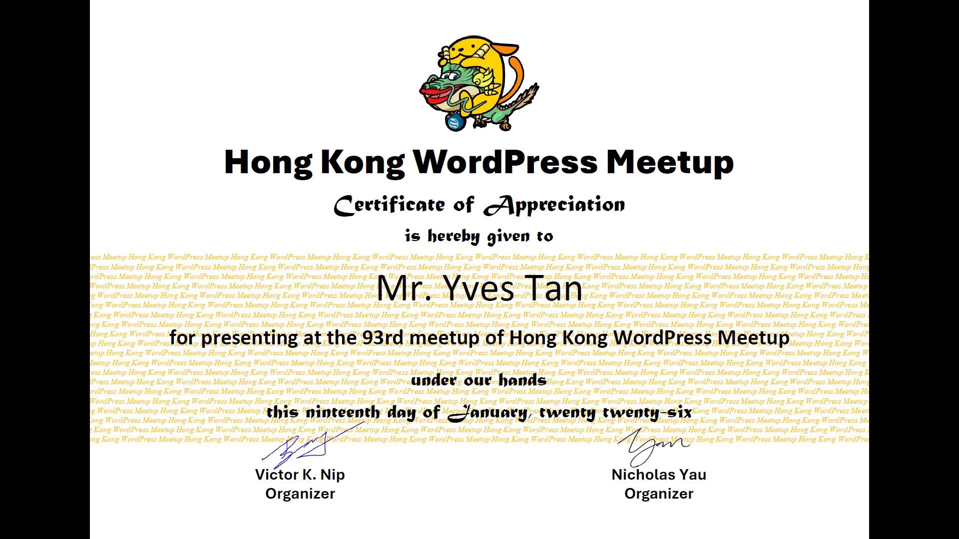 Apply to Your Website Today by Yves Tan 7:05 General Q&A/Discussion 7:35 Closing 7:50 Dinner in nearby Hong Kong style restaurant (Optional) 8:00