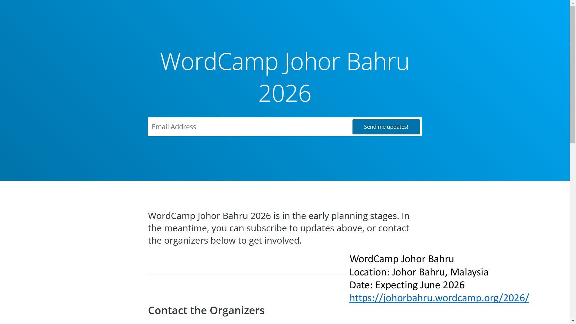 Expecting June 2026 https://johorbahru.wordcamp.org/2026/