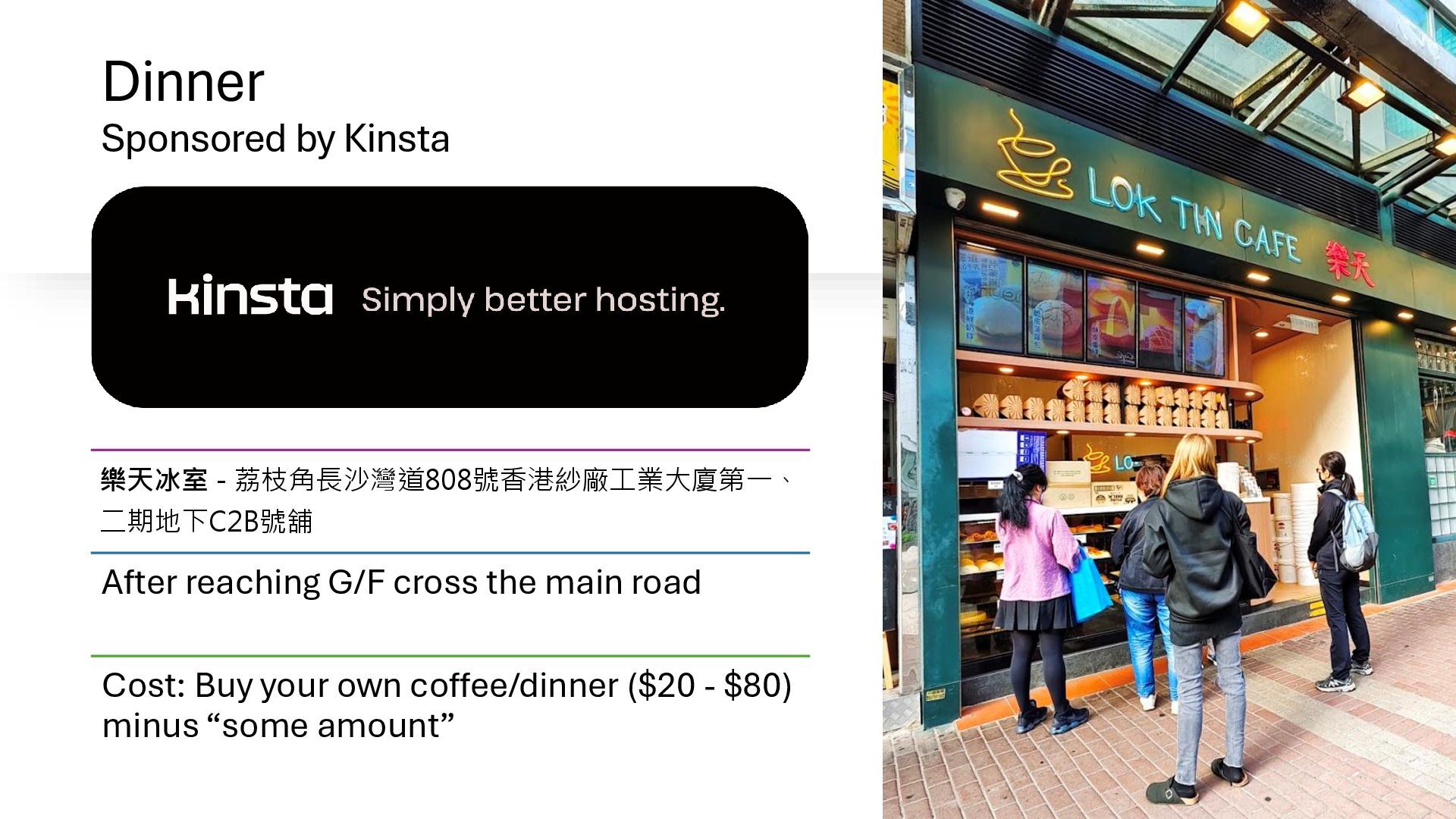 7. Dinner Sponsored by Kinsta 31 樂天冰室 - 荔枝角長沙灣道808號香港紗廠工業大廈第一、 二期地下C2B號舖 After