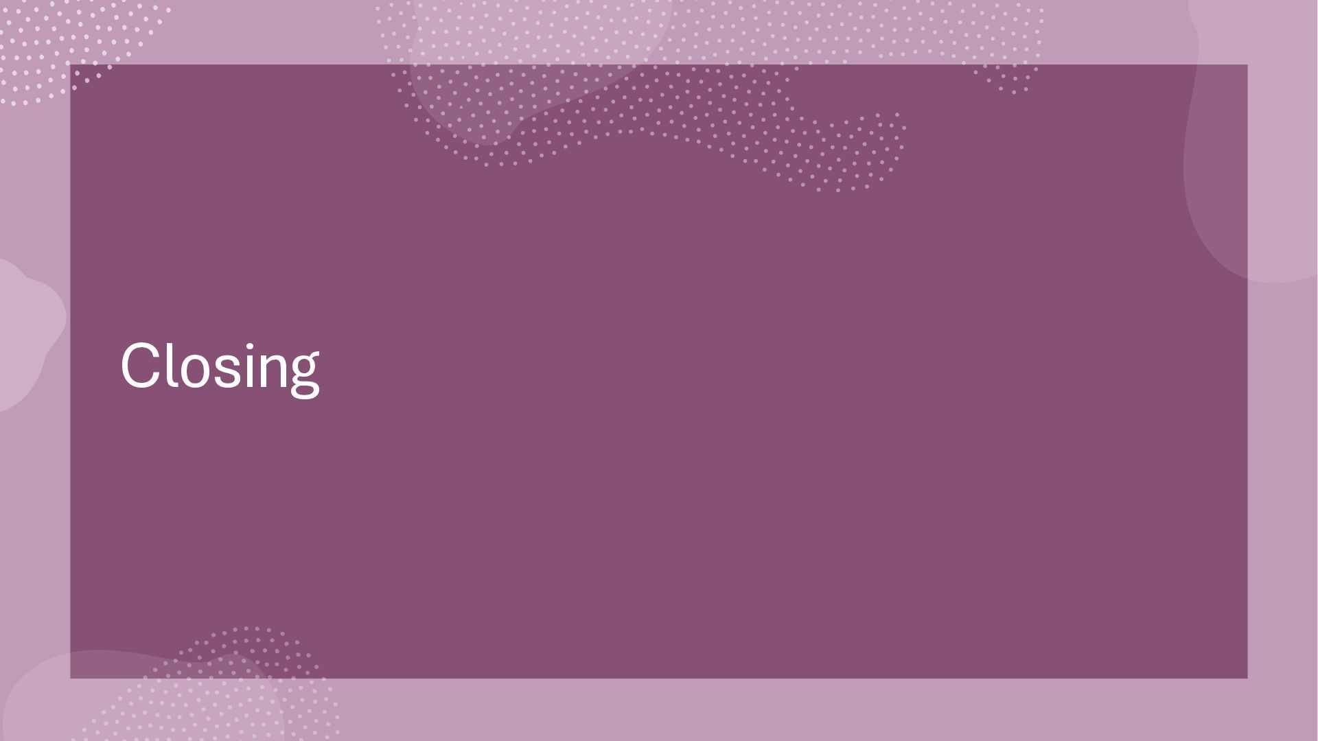 General Q&A/Discussion 7:35 Closing 7:50 Dinner in nearby Hong Kong style restaurant (Optional) 8:00