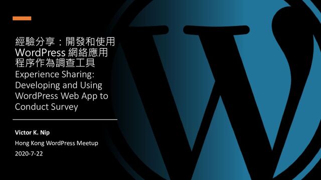 Meetup中演講。 Victor is a tech enthusiast, overaged student, WP/system developer, WordCamp Hong Kong organizer, and arguably a good person. He previously spoke in Hong Kong WordPress Meetup in June 2018.