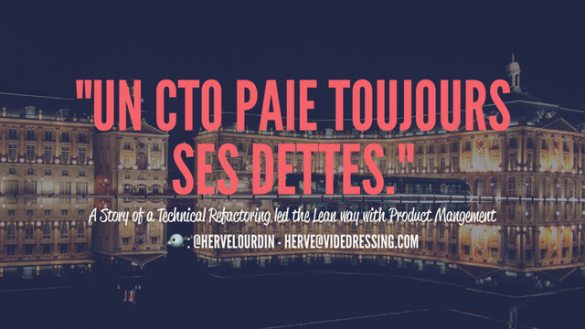 Presentation about technical debt at www.videdressing.com and how we prioritized our tech refactoring project jointly with product management team using business criteria. Presentation held at Agile Tour bordeaux 2017.