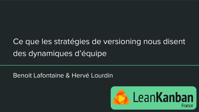 versioning elles-aussi peuvent évoluer dans le temps ◦ Une organisation qui croît ou change nécessite de revoir la validité de sa stratégie ◦ Challengez vos choix initiaux pour voir si ils sont toujours valables ! • Inspirez-vous des modèles et adaptez les à votre contexte