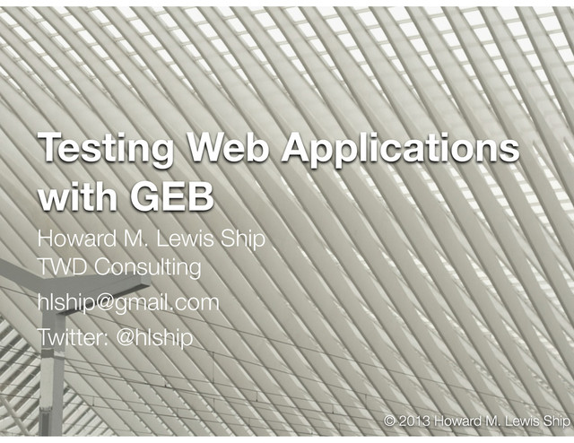 – 5000 - 7000 tests 2001 First JUnit tests (Tapestry template parser) 2003-ish Started using TestNG 2004-ish Started using EasyMock 2005-ish Started using Selenium 1 2006-ish Dabbled in Groovy 2010 Spock! ~ 0.4 2011 Geb 0.5.0