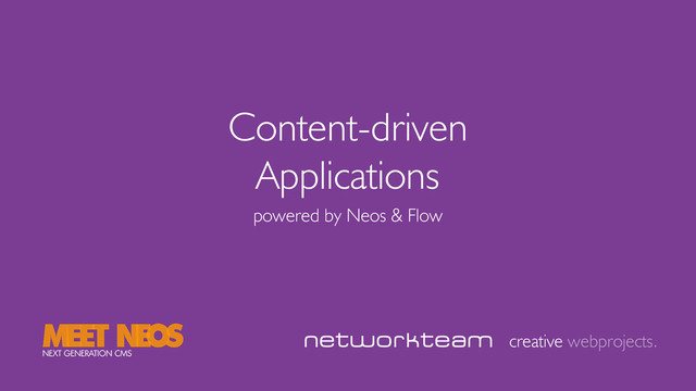 Meet Neos, Hamburg 2015 - Wie kann mit Neos aus einer Website eine Applikation entstehen? Ohne viel Code können viele Anforderungen effizient mit Nodes (Content) implementiert werden.
