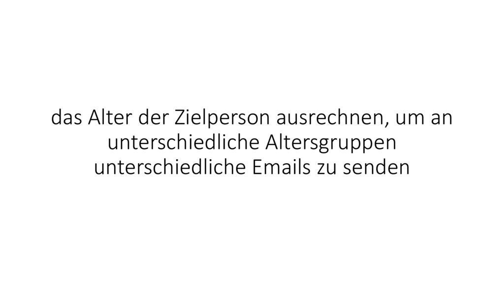 wie zum Beispiel Name, Geburtstag, Geschlecht und hinzugefügte Attribute und Tags – werden häufig ebenfalls genutzt und ermöglichen für die Zielperson personalisierte Kampagne.