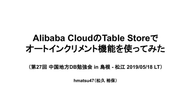 Alibaba CloudのTable Storeで オートインクリメント機能を使ってみた (第27回 中国地方DB勉強会 in 島根 - 松江