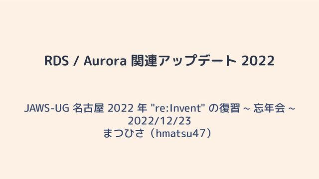 RDS / Aurora 関連アップデート 2022 JAWS-UG 名古屋 2022 年 "re:Invent"