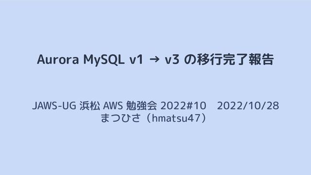 Aurora MySQL v1 → v3 の移行完了報告 JAWS-UG 浜松 AWS 勉強会