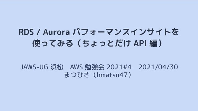 RDS / Aurora パフォーマンスインサイトを 使ってみる(ちょっとだけ API 編) JAWS-UG 浜松 AWS 勉強会