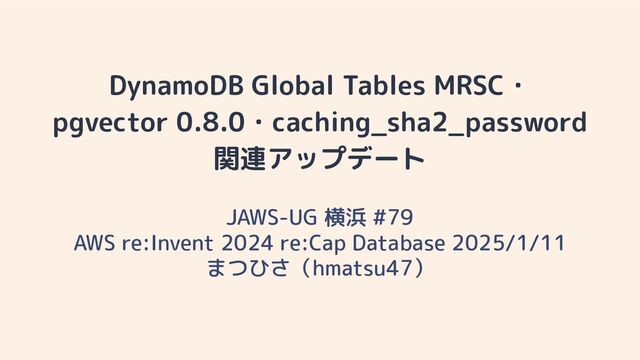 DynamoDB Global Tables MRSC・ pgvector 0.8.0・caching_sha2_password 関連アップデート JAWS-UG 横浜 #79