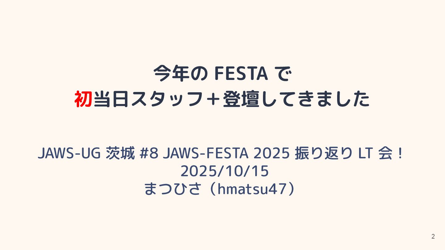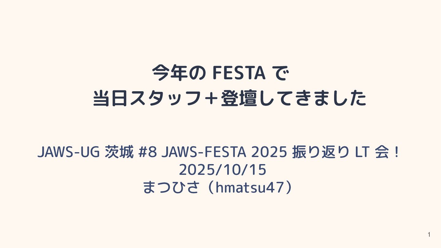 今年の FESTA で 初当日スタッフ+登壇してきました JAWS-UG 茨城 #8 JAWS-FESTA 2025 振り返り