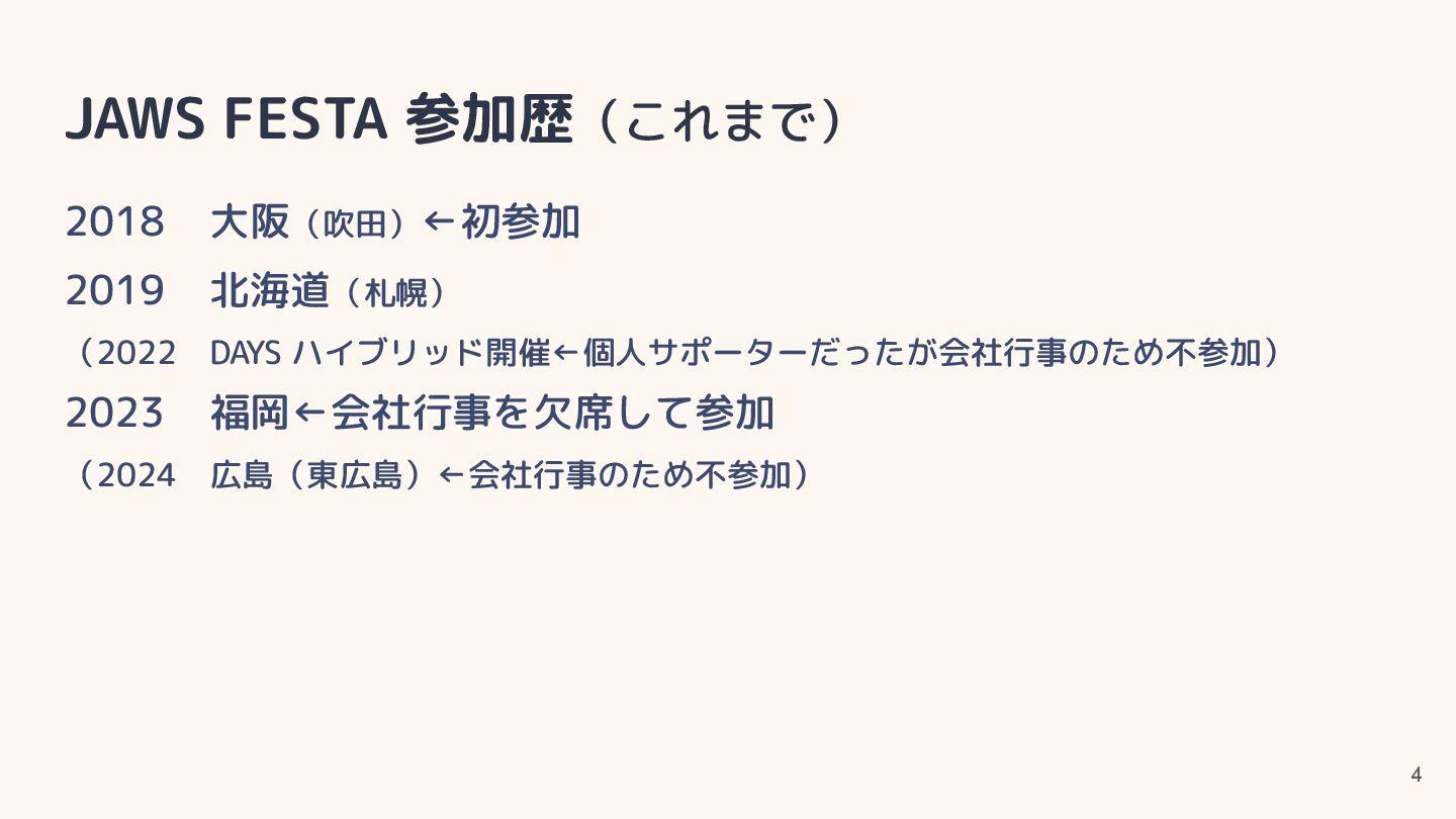 JAWS FESTA 参加歴(これまで) 4 2018 大阪(吹田)←初参加 2019 北海道(札幌) (2022 DAYS