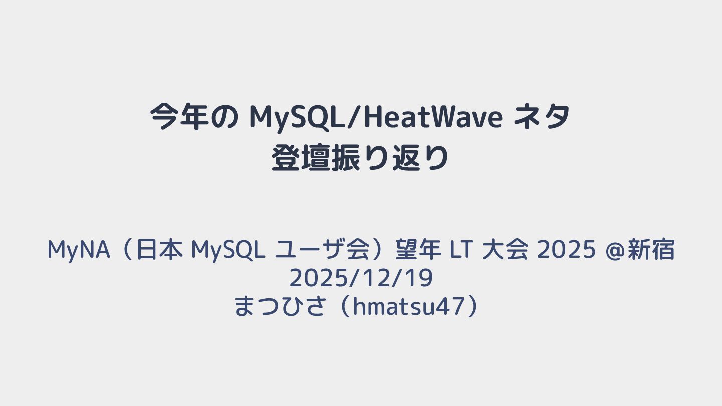 今年の MySQL/HeatWave ネタ 登壇振り返り MyNA(日本 MySQL ユーザ会)望年 LT 大会 2025