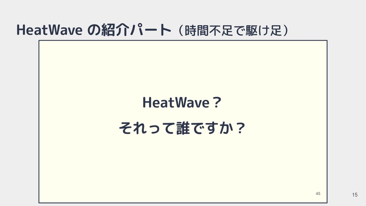 HeatWave の紹介パート(時間不足で駆け足) 15