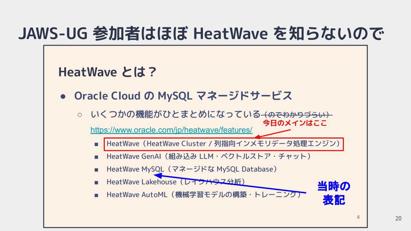 JAWS-UG 参加者はほぼ HeatWave を知らないので 20 当時の 表記