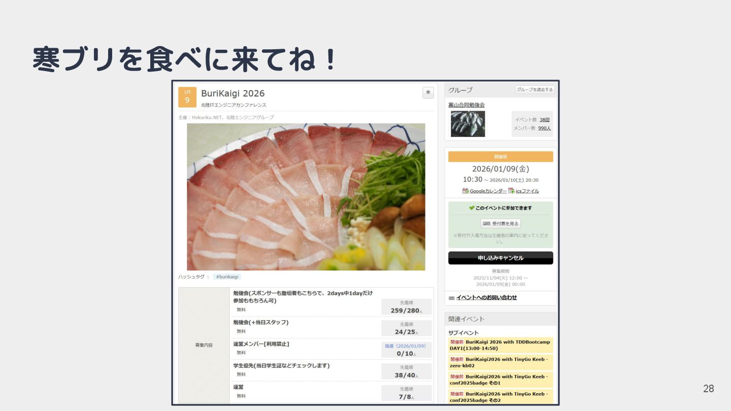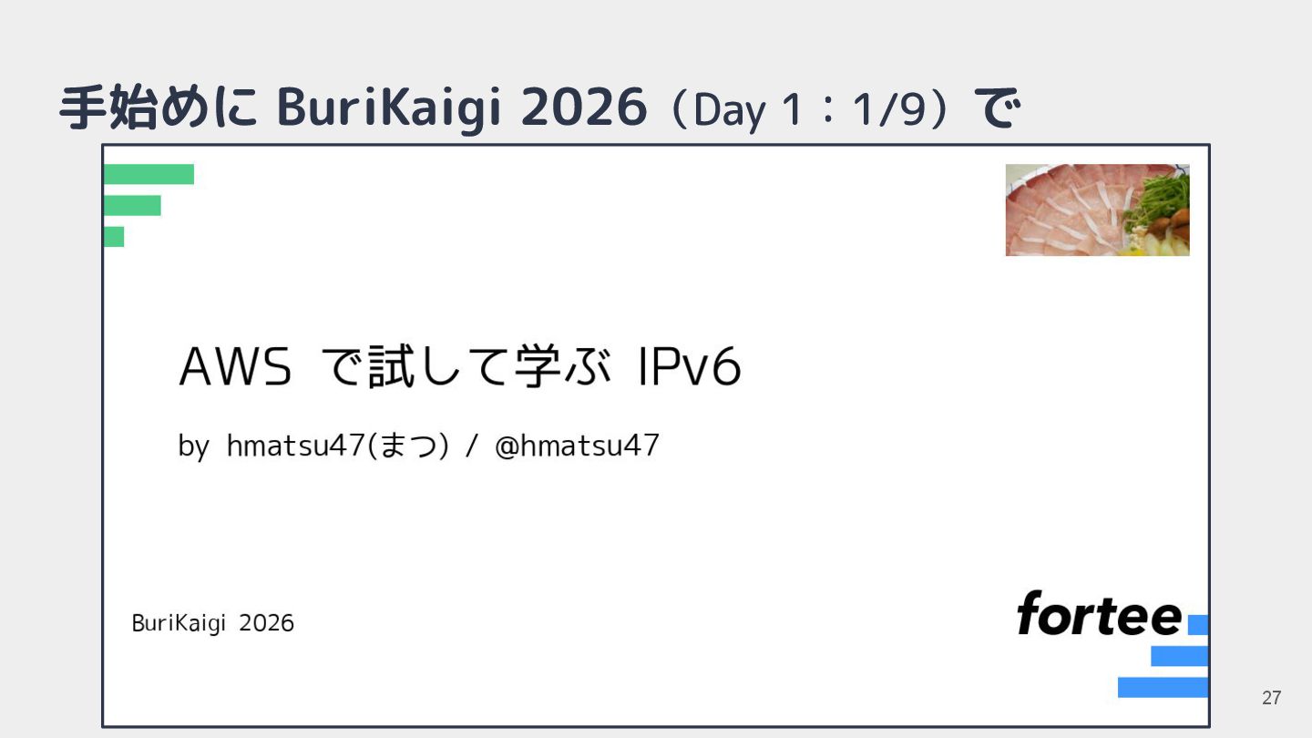 手始めに BuriKaigi 2026(Day 1:1/9)で 27
