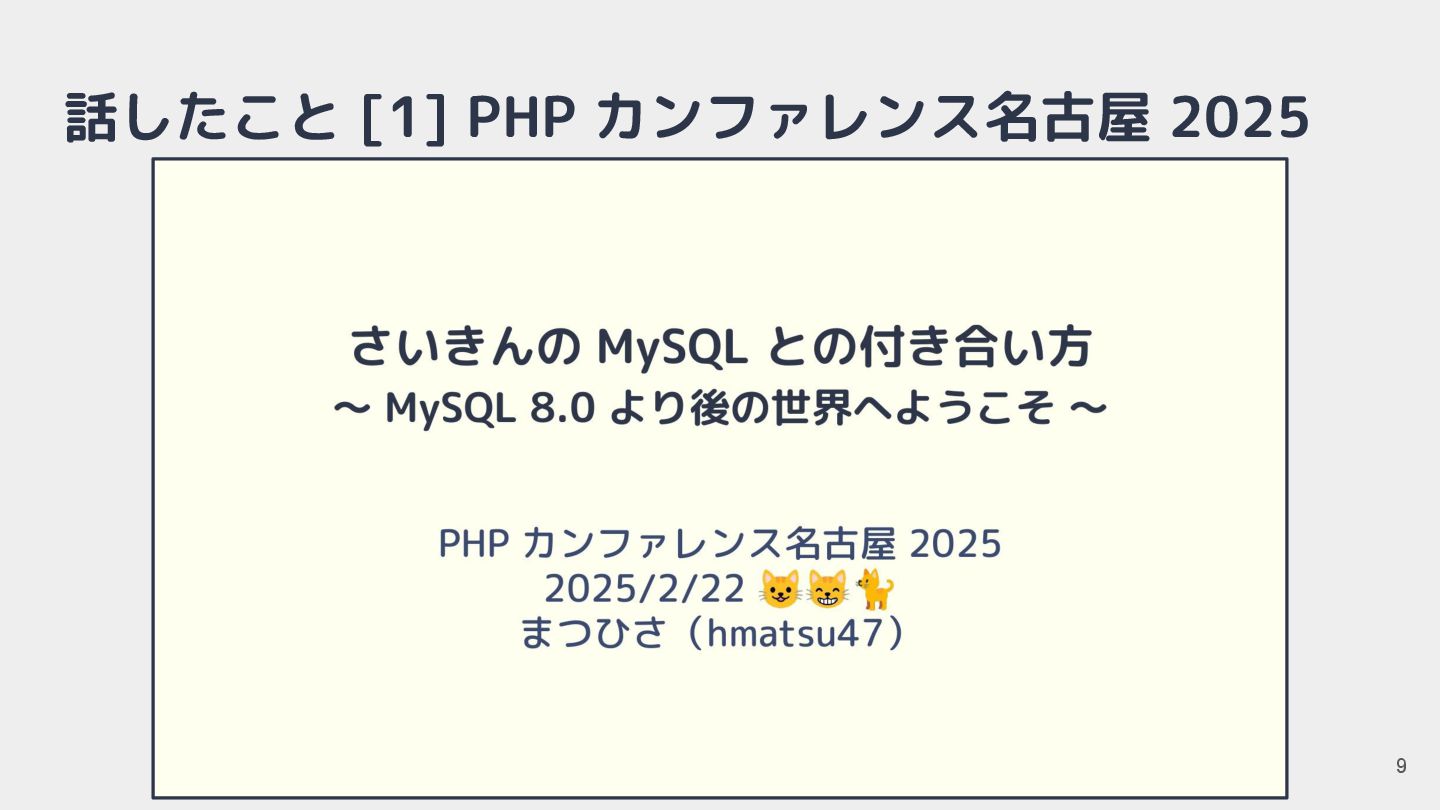 話したこと [1] PHP カンファレンス名古屋 2025 9