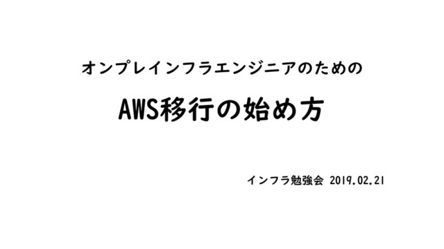 オンプレインフラエンジニアのための AWS移行の始め方 インフラ勉強会 2019.02.21