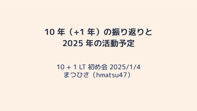 10 年(+1 年)の振り返りと 2025 年の活動予定 10 + 1 LT 初め会
