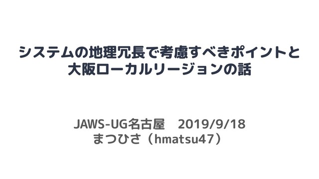 システムの地理冗長で考慮すべきポイントと、大阪ローカルリージョンの話