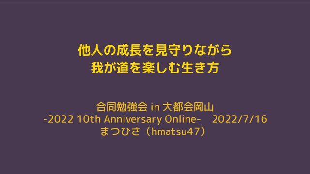 他人の成長を見守りながら 我が道を楽しむ生き方 合同勉強会 in 大都会岡山 -2022 10th Anniversary Online- 2022/7/16 まつひさ(hmatsu47)