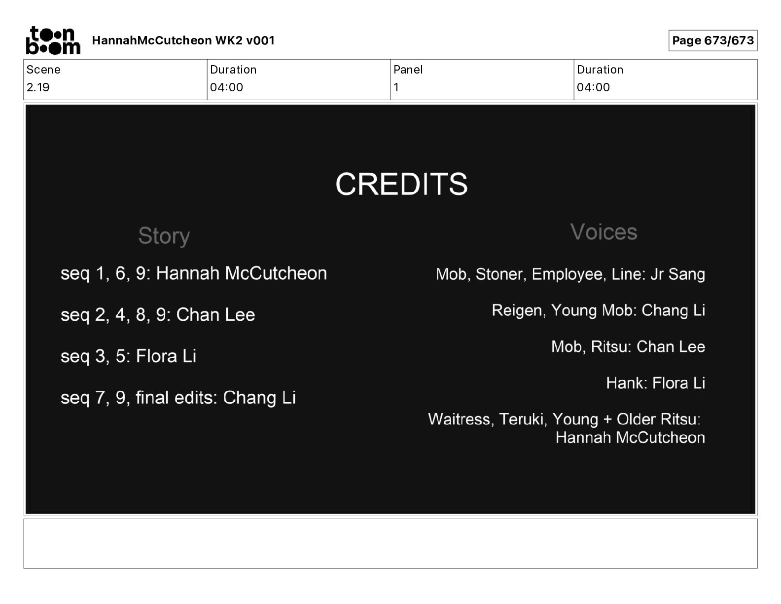 Scene 2.16 Duration 15 05 Panel 33 Duration 00 03