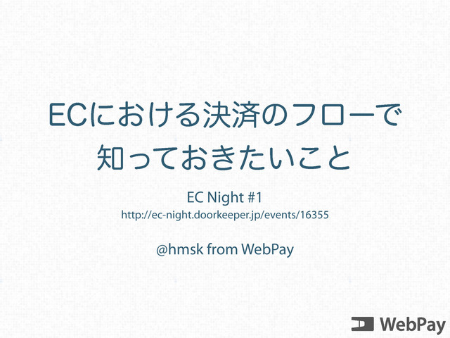 &$ʹ͓͚ΔܾࡁͷϑϩʔͰ ͓͖͍ͬͯͨ͜ͱ EC Night #1 http://ec-night.doorkeeper.jp/events/16355 @hmsk from WebPay