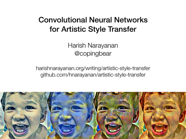 There’s an amazing app out right now called Prisma that transforms your photos into works of art using the styles of famous artwork and motifs. The app performs this style transfer with the help of a branch of machine learning called convolutional neural networks. In this talk we take a journey through the world of convolutional neural networks from theory to practice, as we systematically reproduce Prisma’s core visual effect.
