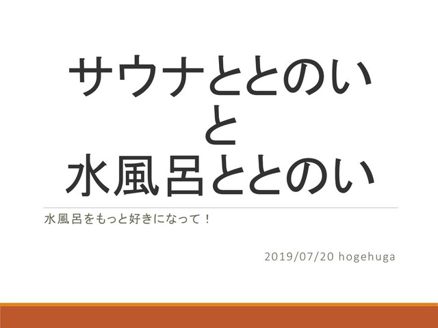 サウナととのい と 水風呂ととのい 水風呂をもっと好きになって! 2019/07/20 hogehuga
