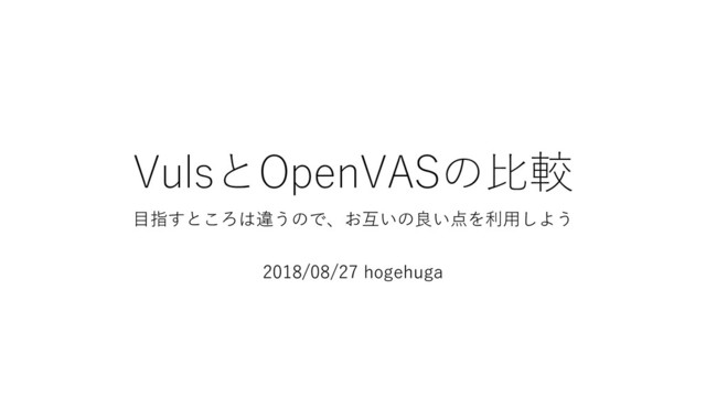 VulsとOpenVASの比較 目指すところは違うので、お互いの良い点を利用しよう 2018/08/27 hogehuga