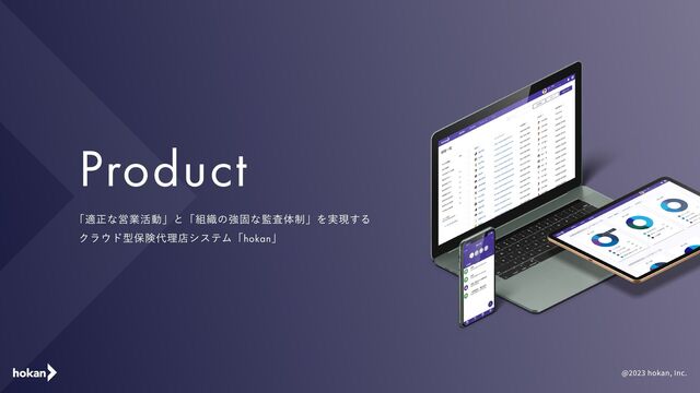 @2023 hokan, Inc. Product 「適正な営業活動」と「組織の強固な監査体制」を実現する クラウド型保険代理店システム「hokan」