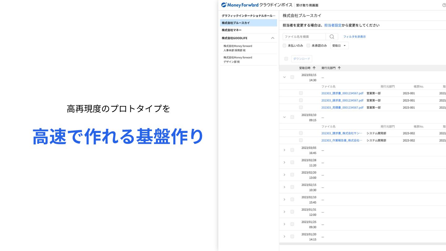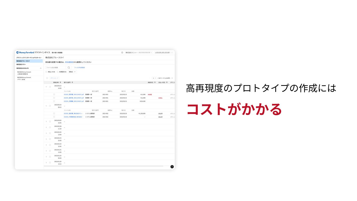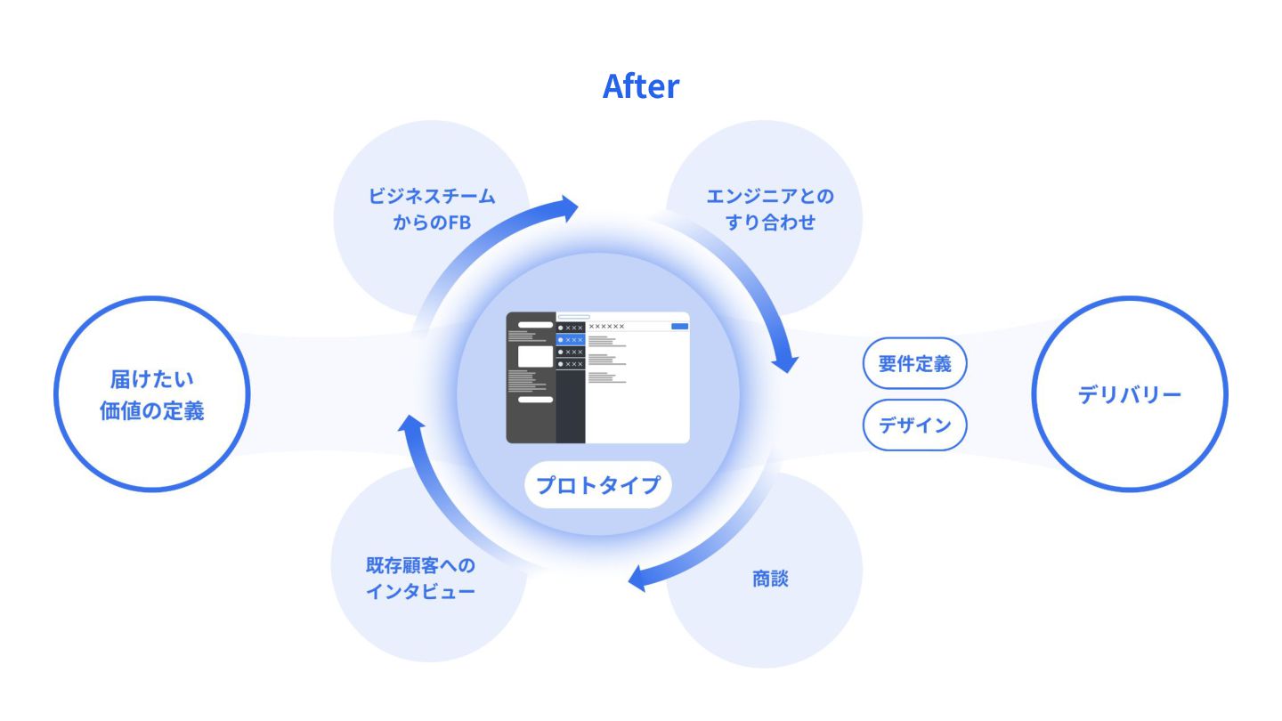 職能の壁を溶かすプロトタイプ開発 • より良い解決策の提案がしやすい • 不確実性が早期に排除され、⼯数⾒積もりがしやすい • 解決策の検証や、商談での価値訴求がしやすい • ビジネスメンバーやユーザーが 運⽤をイメージしたフィードバックができる