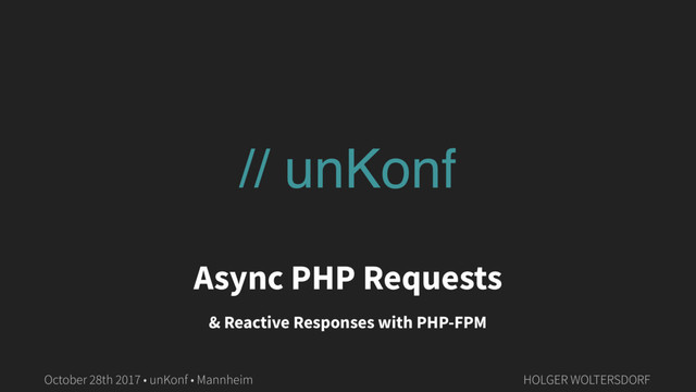 There are many approaches to execute PHP sub-tasks asynchronously or to parallelise PHP execution. While some solutions require extra extensions, individual PHP builds or a lot of process control management, this talk will show you how to configure and use the built-in PHP FastCGI Process Manager (php-fpm) to execute requests asynchronously in an isolated, tunable process pool and eventually handle their responses in a reactive way.