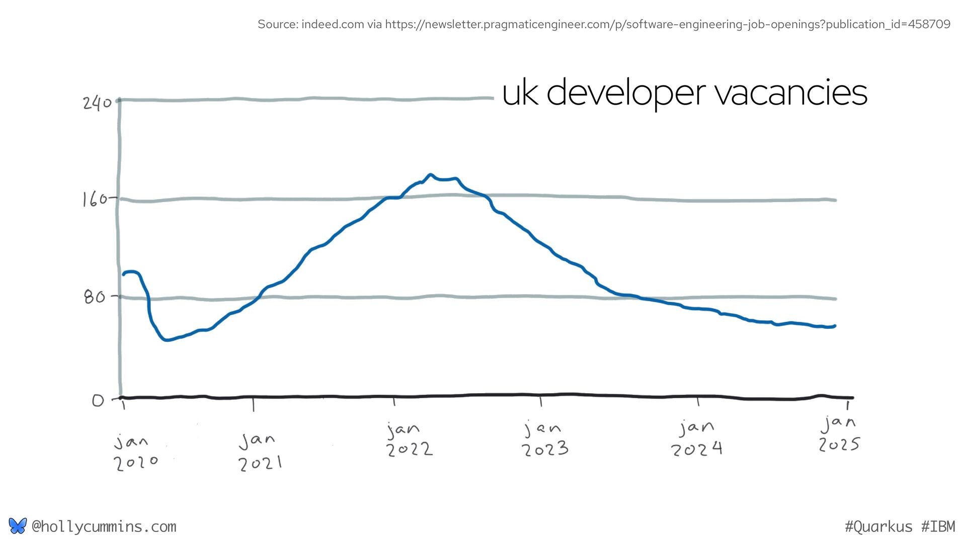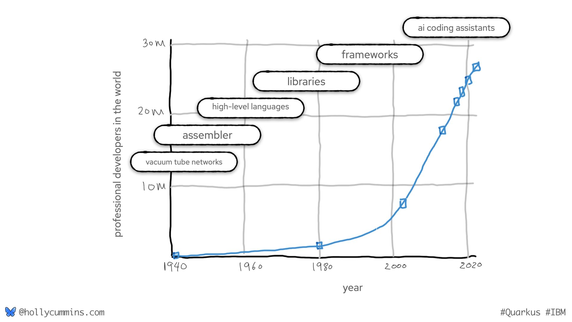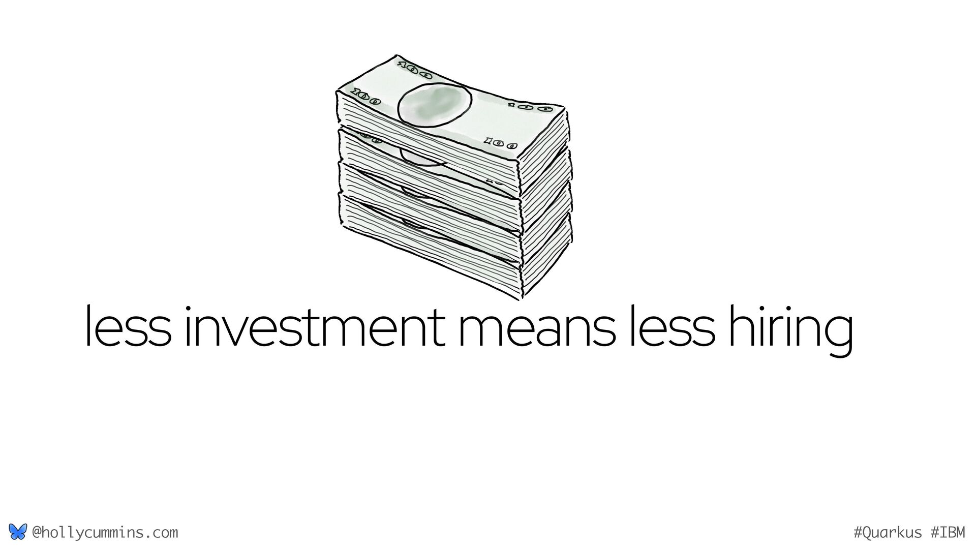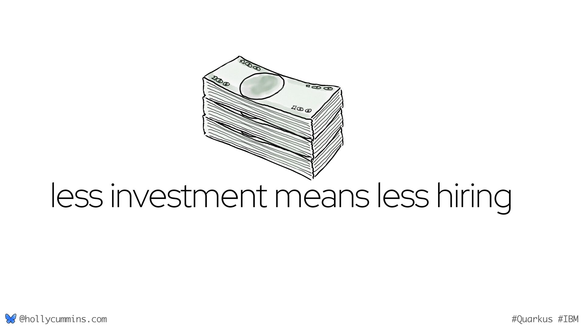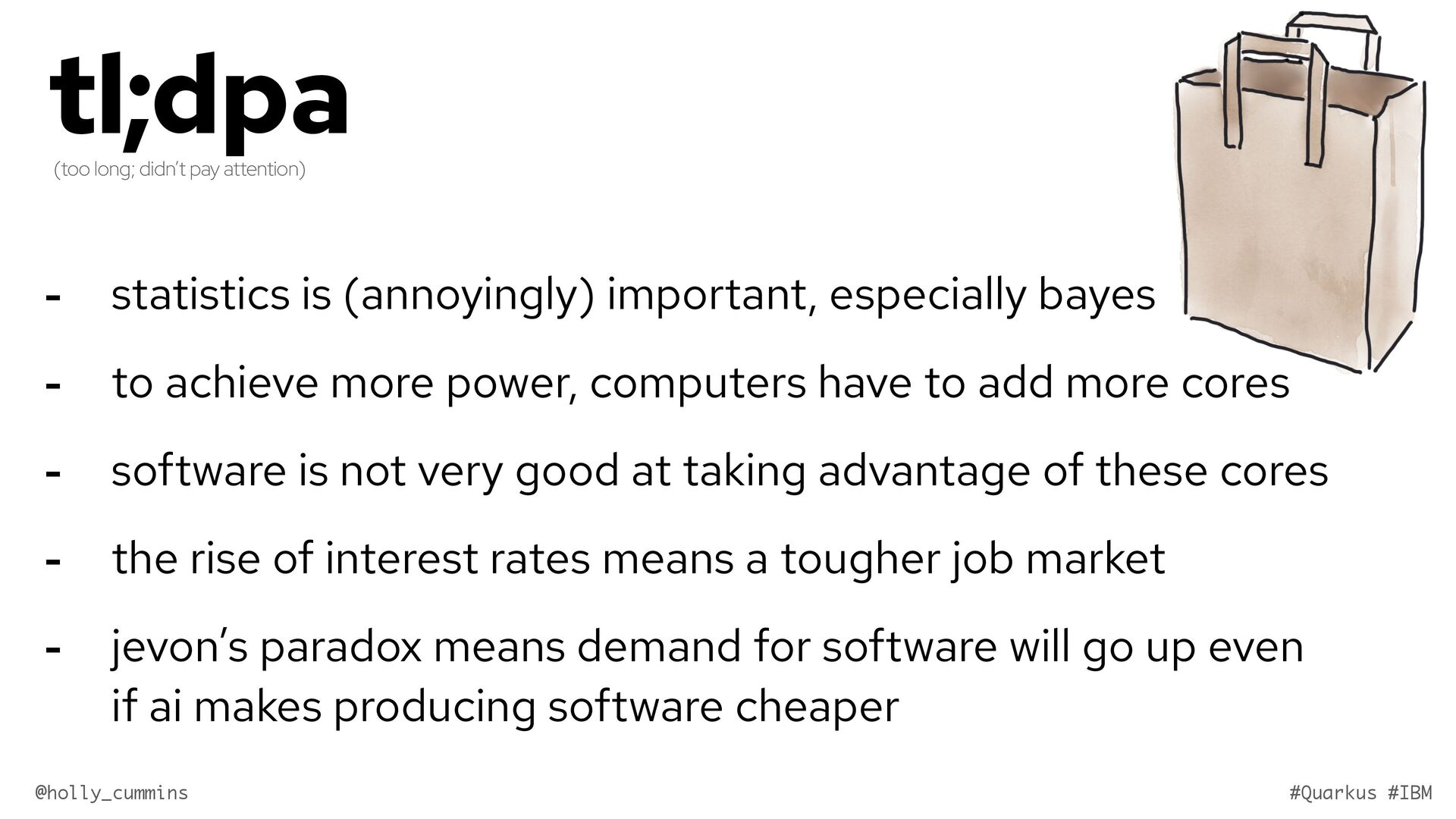 Development is about working with computers, right? Well, not quite. Development is all about working with computers (easy), and working with people (hard). Oh, and it’s about physics. Things like the speed of light and thermodynamics influence APIs, because they influence hardware and networking. If, like Holly, you slept through statistics modules in university, it will be a surprise to discover how statistics has changed our development workflows. Finally, we mustn’t forget economics. The end of zero-interest-rates has changed the employment landscape for many of us. In this wide-ranging talk, Holly will cover why the end of Moore’s law means we might finally need to get to grips with concurrent programming, why is Loom a good idea now when green threads were a bad idea, why is AOT a good idea now when it used to be a bad idea, and how much you should care about business studies, finance, and statistics.