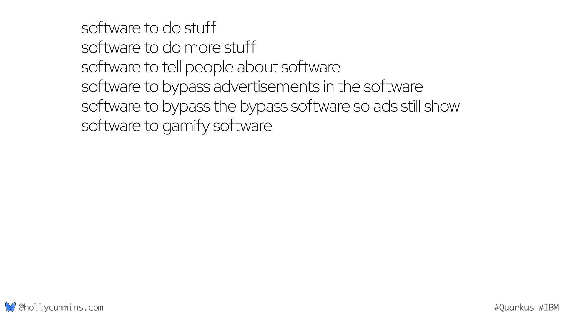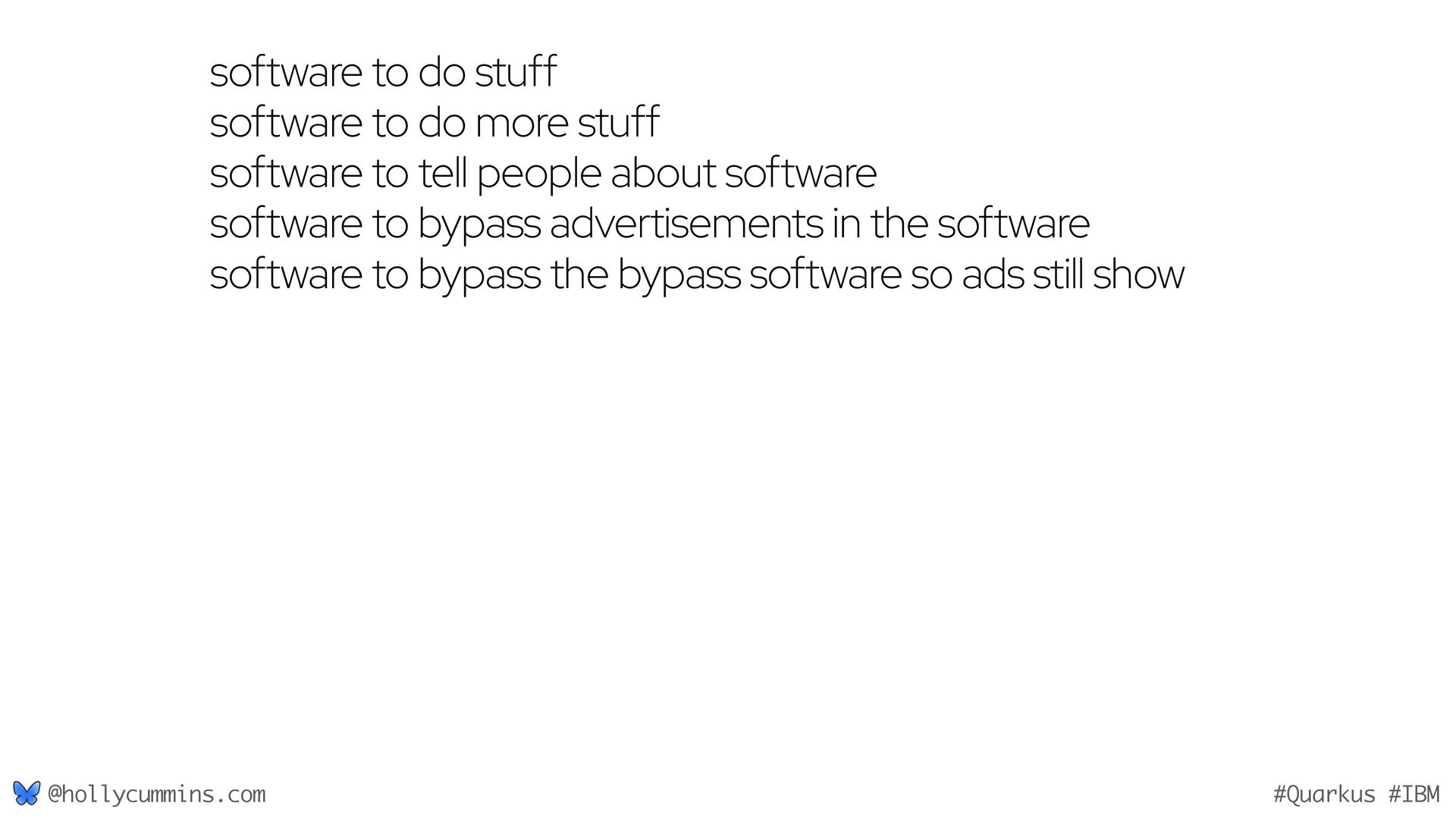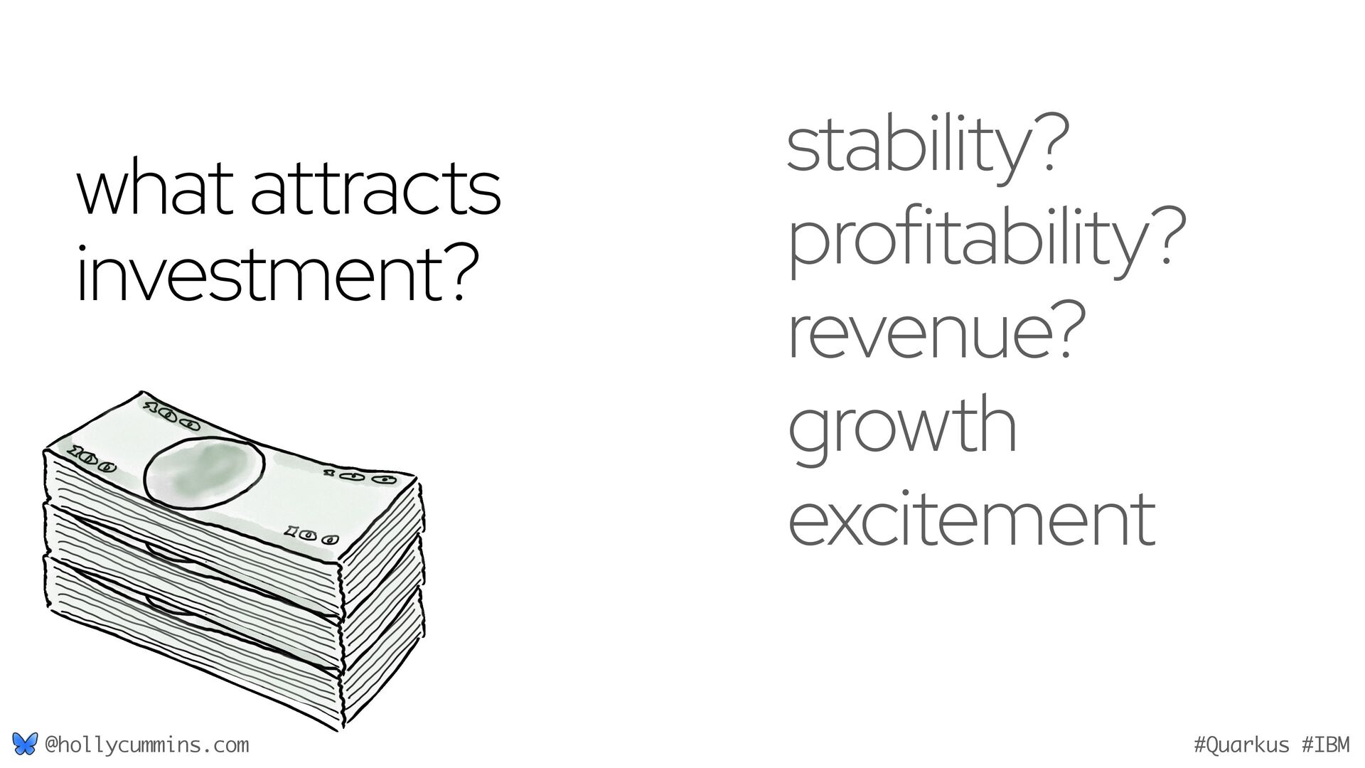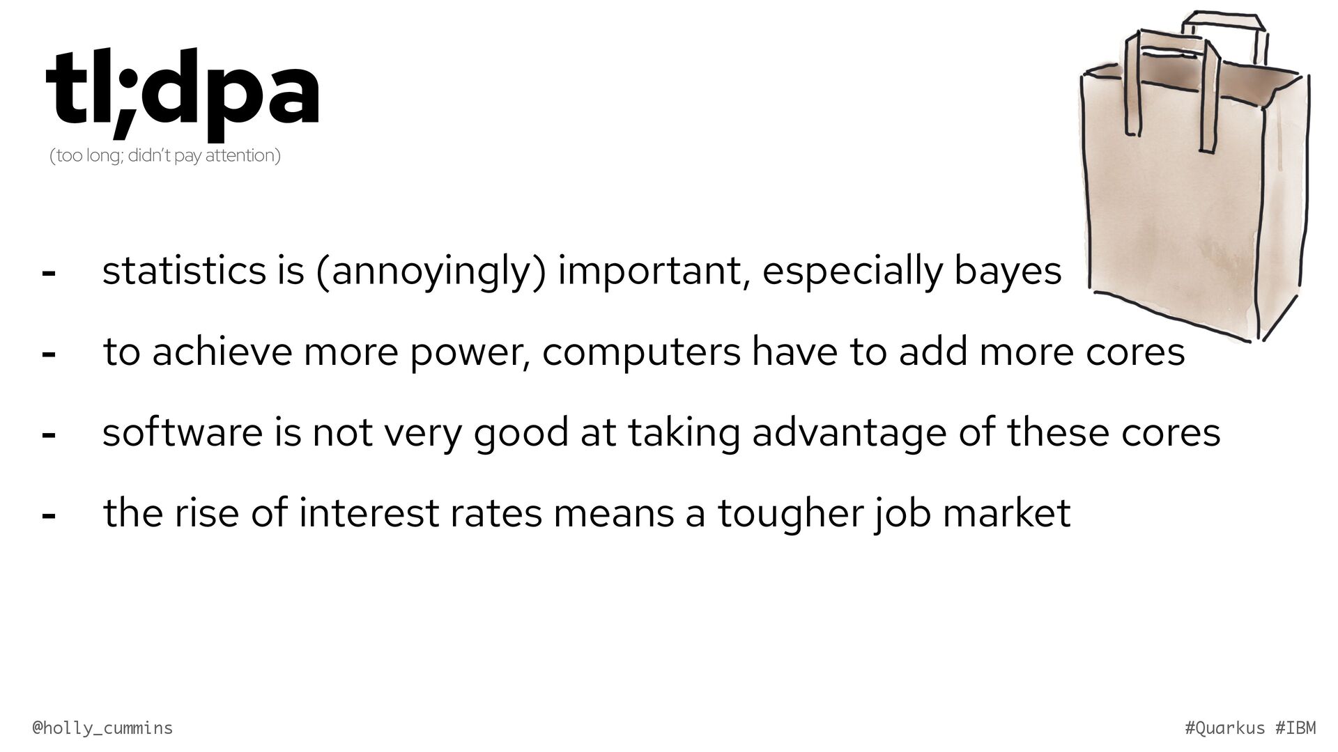 Development is about working with computers, right? Well, not quite. Development is all about working with computers (easy), and working with people (hard). Oh, and it’s about physics. Things like the speed of light and thermodynamics influence APIs, because they influence hardware and networking. If, like Holly, you slept through statistics modules in university, it will be a surprise to discover how statistics has changed our development workflows. Finally, we mustn’t forget economics. The end of zero-interest-rates has changed the employment landscape for many of us. In this wide-ranging talk, Holly will cover why the end of Moore’s law means we might finally need to get to grips with concurrent programming, why is Loom a good idea now when green threads were a bad idea, why is AOT a good idea now when it used to be a bad idea, and how much you should care about business studies, finance, and statistics.