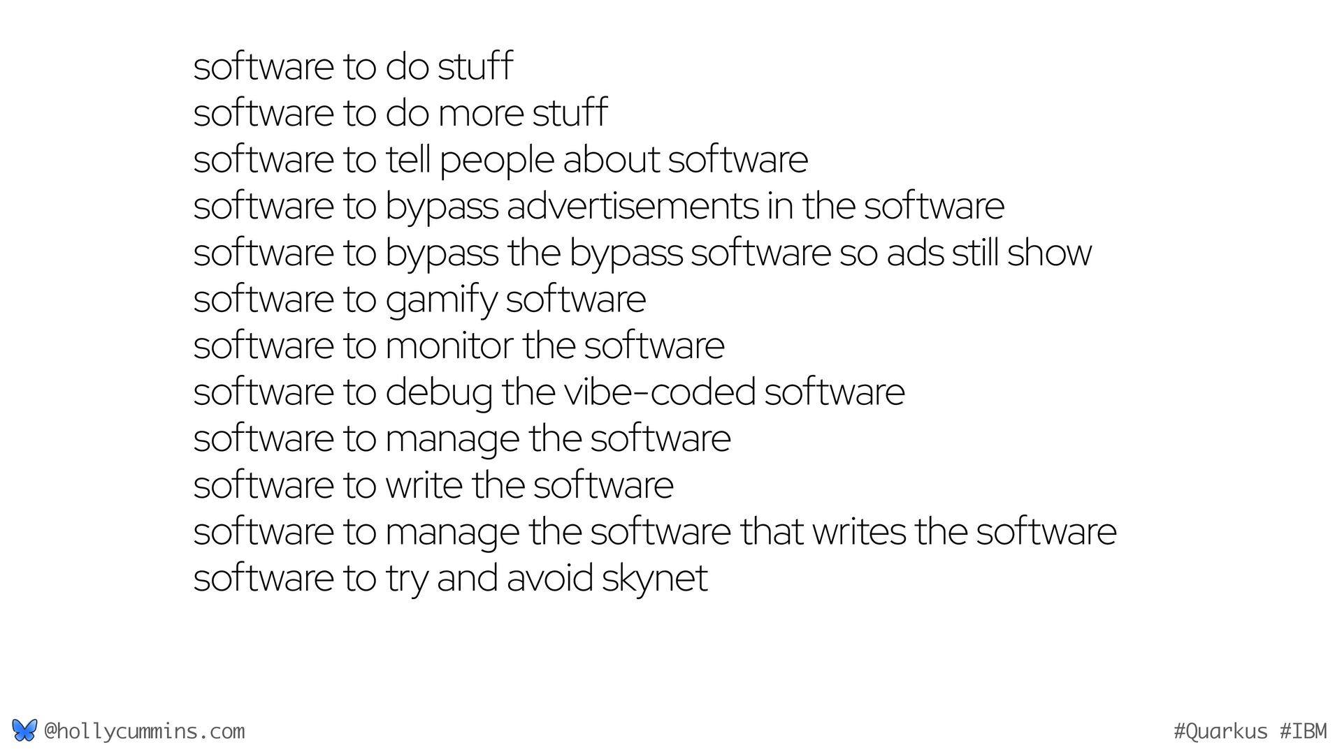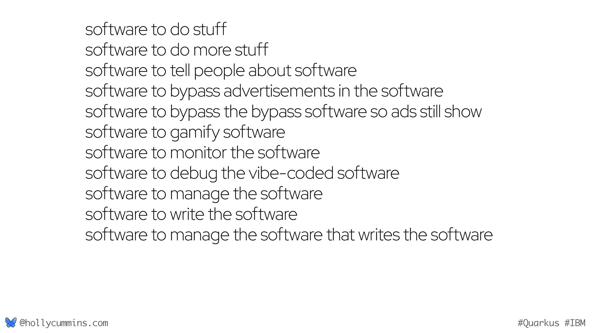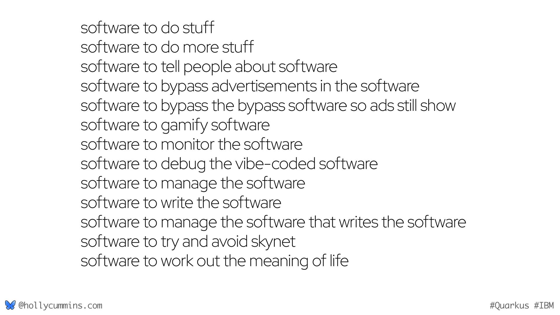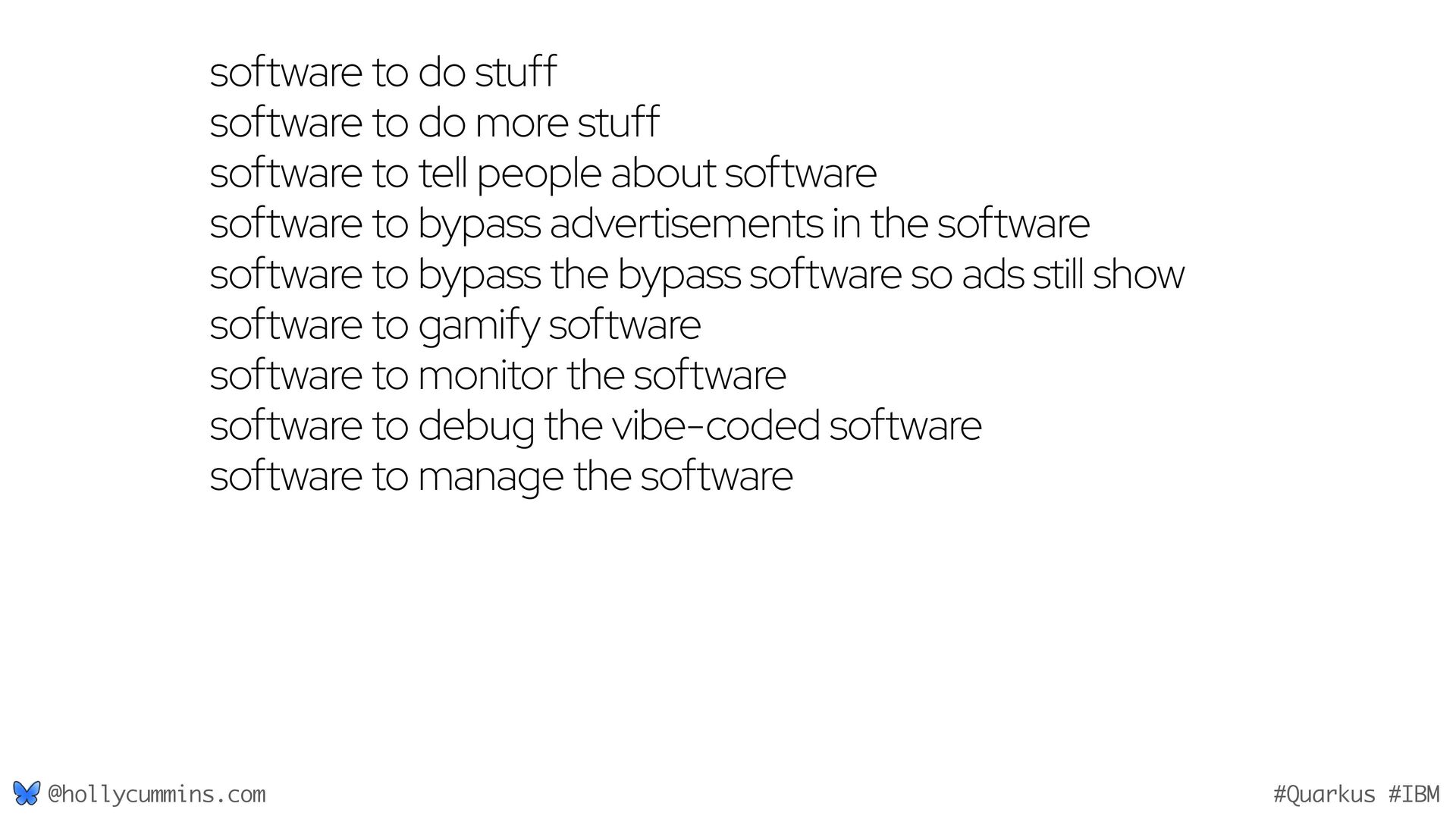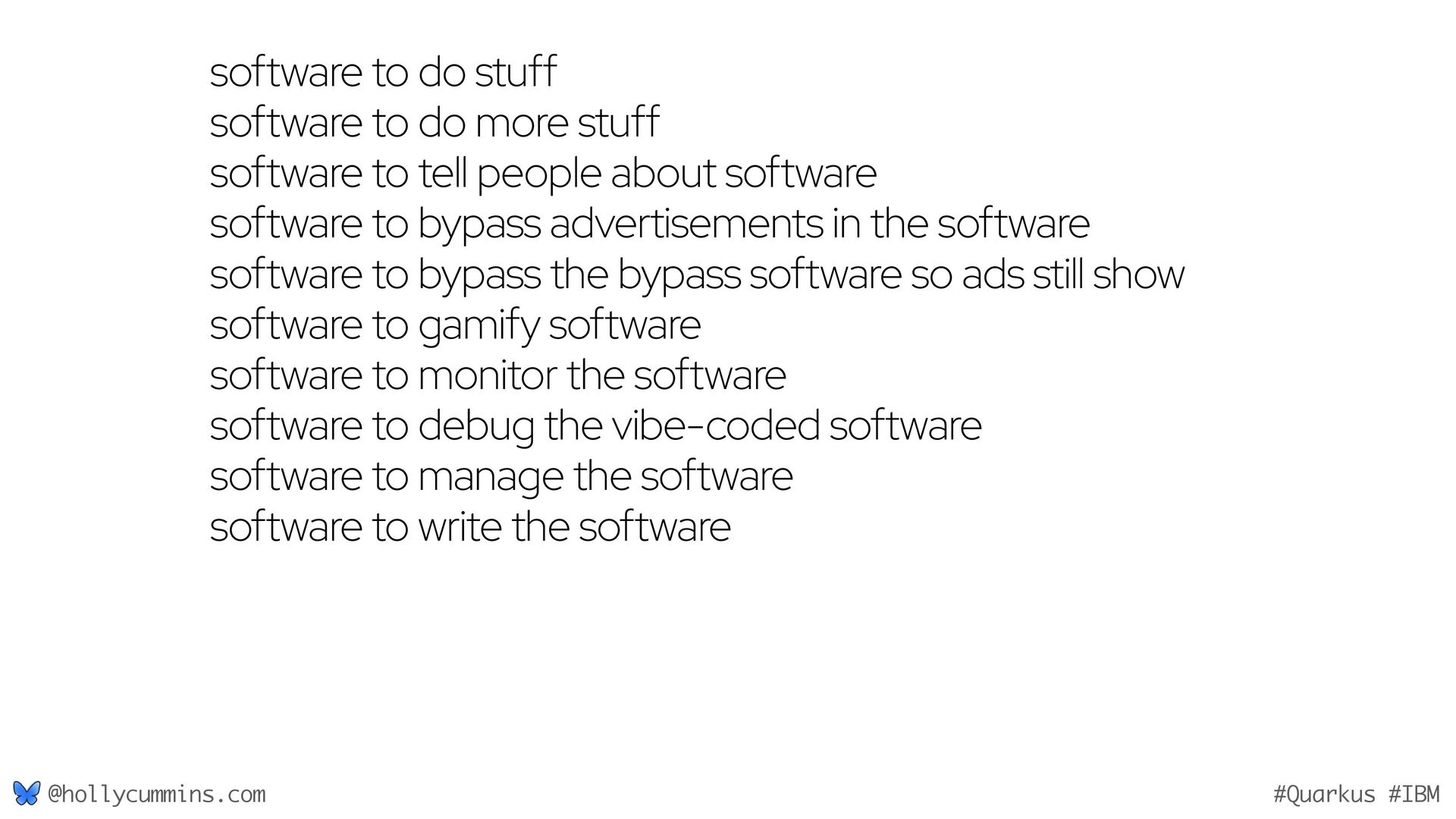 Development is about working with computers, right? Well, not quite. Development is all about working with computers (easy), and working with people (hard). Oh, and it’s about physics. Things like the speed of light and thermodynamics influence APIs, because they influence hardware and networking. If, like Holly, you slept through statistics modules in university, it will be a surprise to discover how statistics has changed our development workflows. Finally, we mustn’t forget economics. The end of zero-interest-rates has changed the employment landscape for many of us. In this wide-ranging talk, Holly will cover why the end of Moore’s law means we might finally need to get to grips with concurrent programming, why is Loom a good idea now when green threads were a bad idea, why is AOT a good idea now when it used to be a bad idea, and how much you should care about business studies, finance, and statistics.