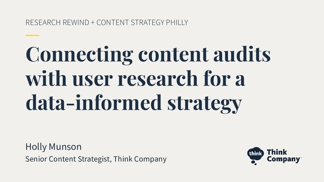 Holly Munson Senior Content Strategist, Think Company RESEARCH REWIND + CONTENT STRATEGY PHILLY
