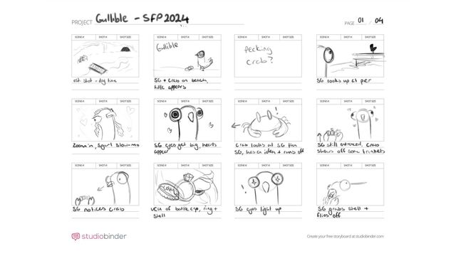 The full storyboards for two of my university projects. The first is "Gullible", my third year group project, and the second is the chase scene from the "Pre-vis and Cinematography" first year module.