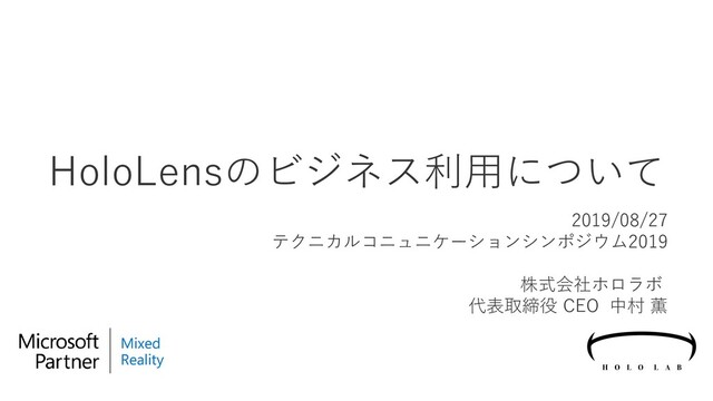 HoloLensのビジネス利用について 2019/08/27 テクニカルコニュニケーションシンポジウム2019 株式会社ホロラボ 代表取締役 CEO 中村 薫