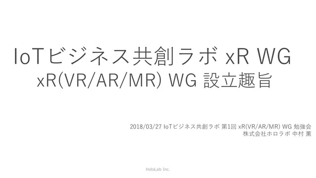 「IoTビジネス共創ラボ 第1回 xR(VR/AR/MR) WG 勉強会」でのWG設立趣旨についてのスライドです https://iotbizlabo.connpass.com/event/77188/