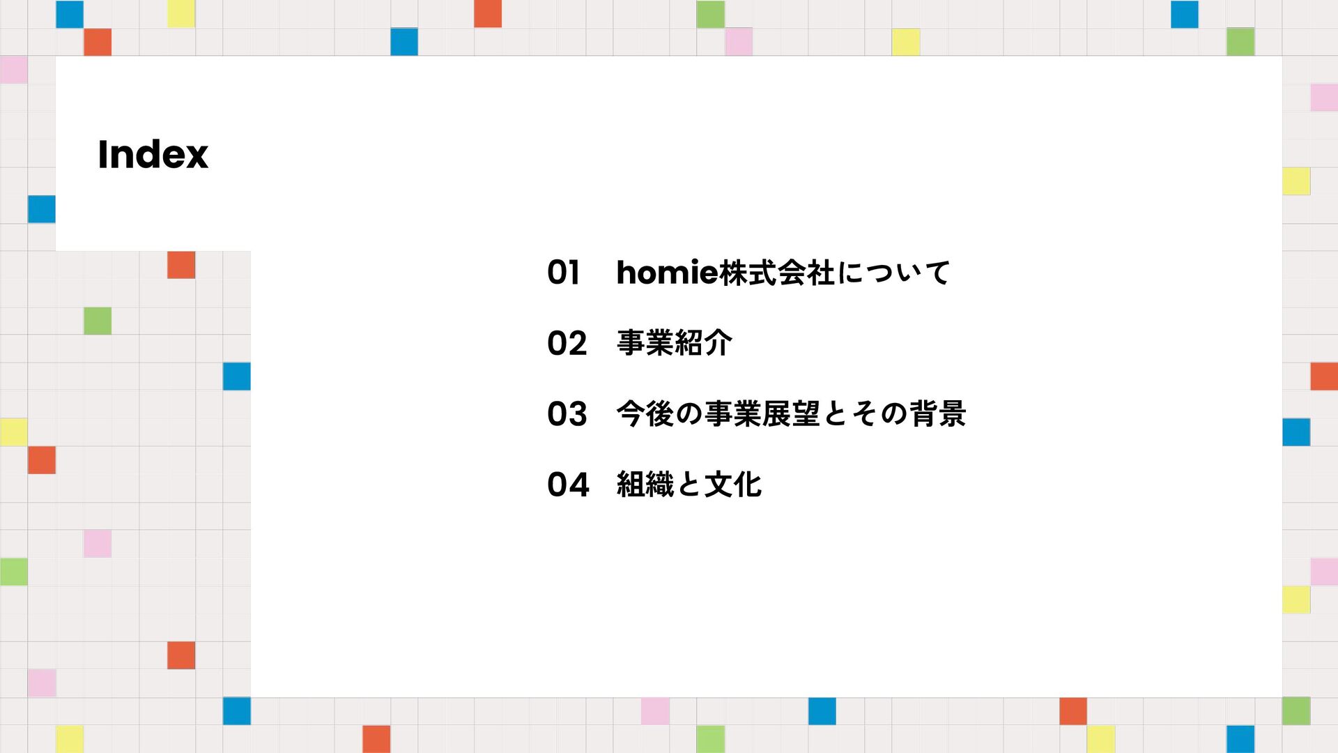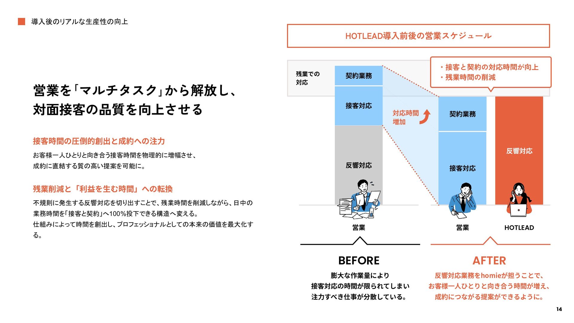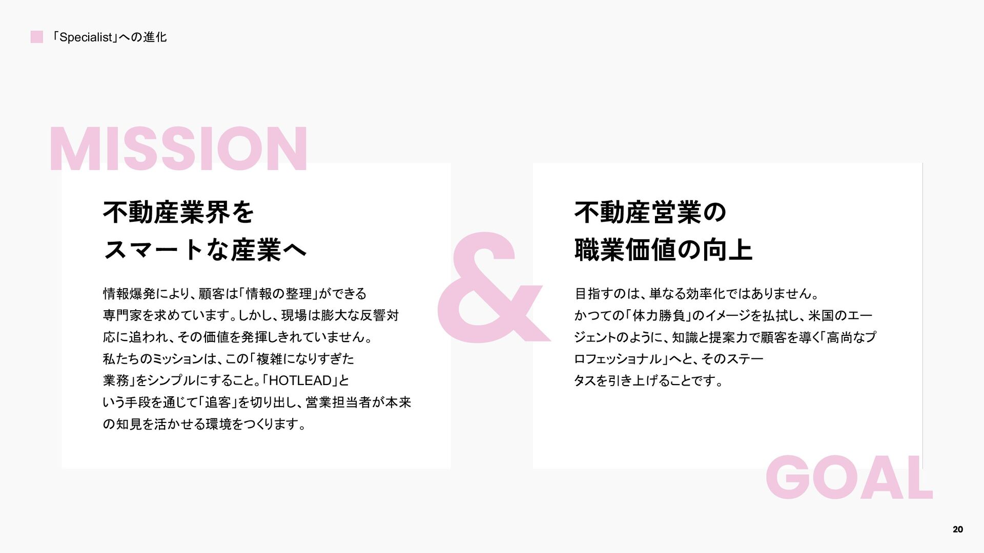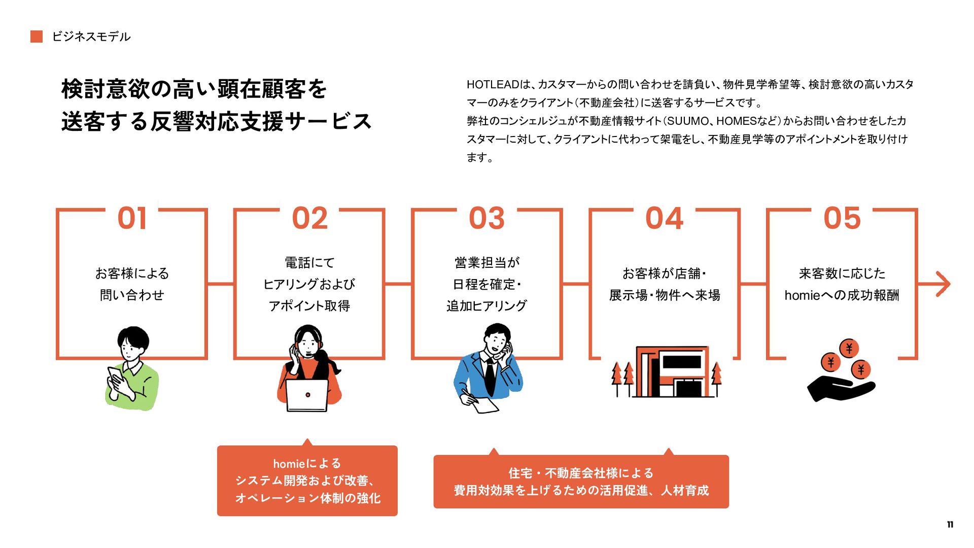 4月 複数の個人投資家からの第3社割当増資により 5,700万円の資金調達を実施 6月 「HOTLEAD」不動産売買向けサービスリリース 2021 4月 「HOTLEAD」不動産賃貸向けサービスリリース 6月 「HOTLEAD」注文住宅向けサービスリリース 7月 導入店舗数100店舗突破 2022 5月 +SHIFT TSUKIJI(東京都中央区)へオフィス移転 7月 第三者割当増資により1億円の資金調達を実施 2023 6月 導入店舗数500店舗突破 2024 1月 アレトゥーサ渋谷(東京都渋谷区)へオフィス移転 2月 「HOTLEAD」不動産売却向けサービスリリース 10月 導入店舗数1000店舗突破 2025 1月 株式会社Red Frascoと経営統合 10月 導入店舗数1500店舗突破