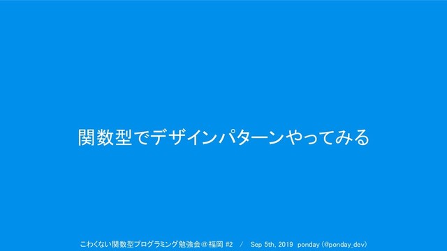 関数型でデザインパターンやってみる こわくない関数型プログラミング勉強会@福岡 #2 / Sep 5th, 2019 ponday (@ponday_dev)