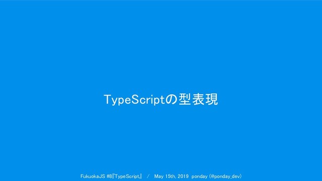 TypeScriptの型表現 FukuokaJS #8『TypeScript』 / May 15th, 2019 ponday (@ponday_dev)