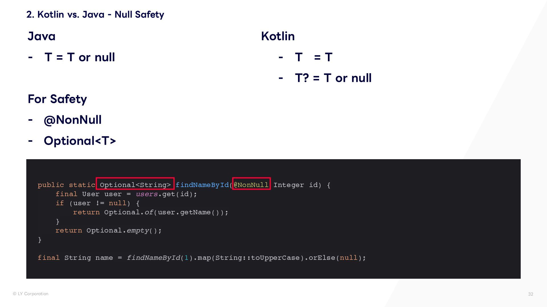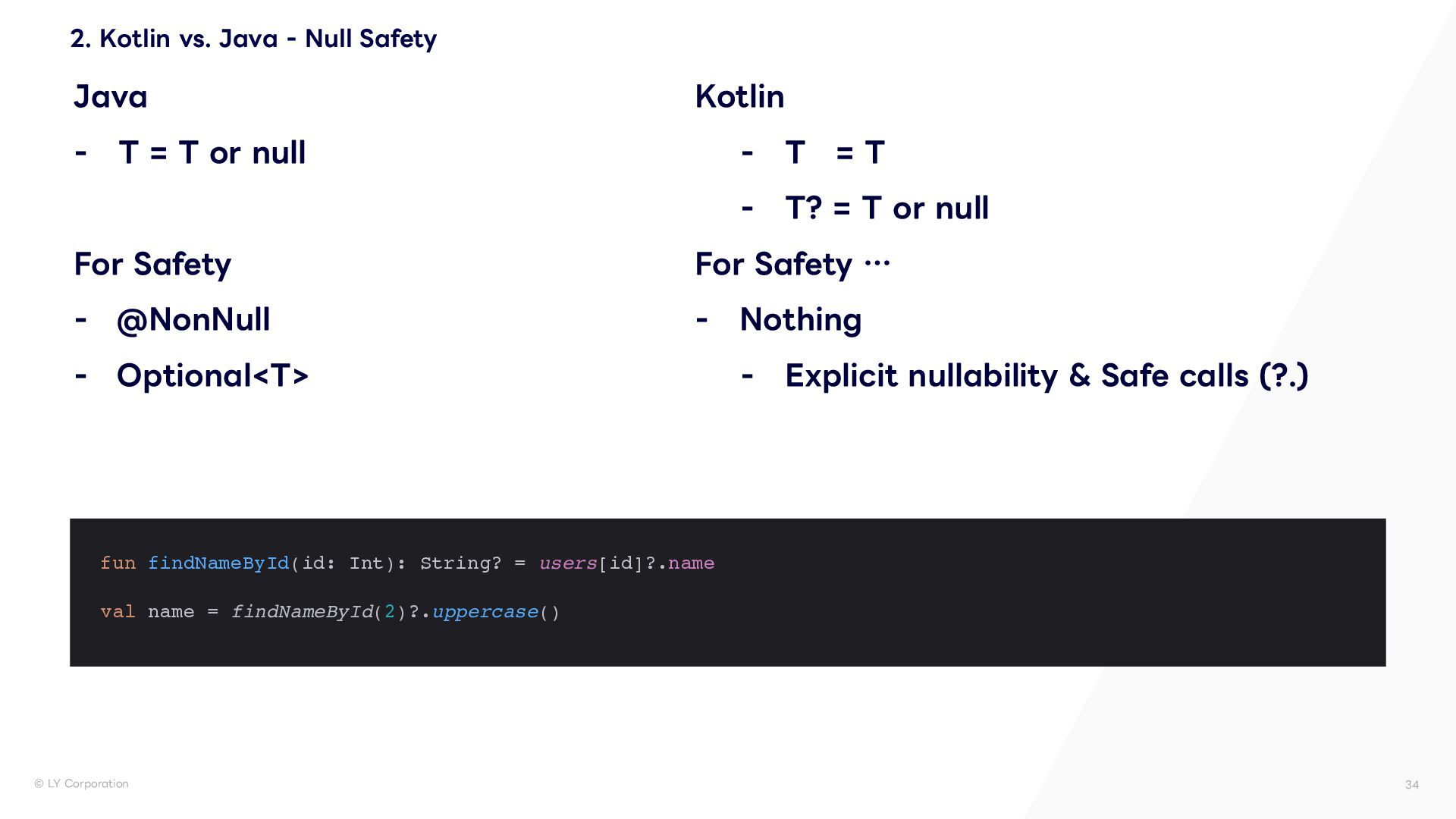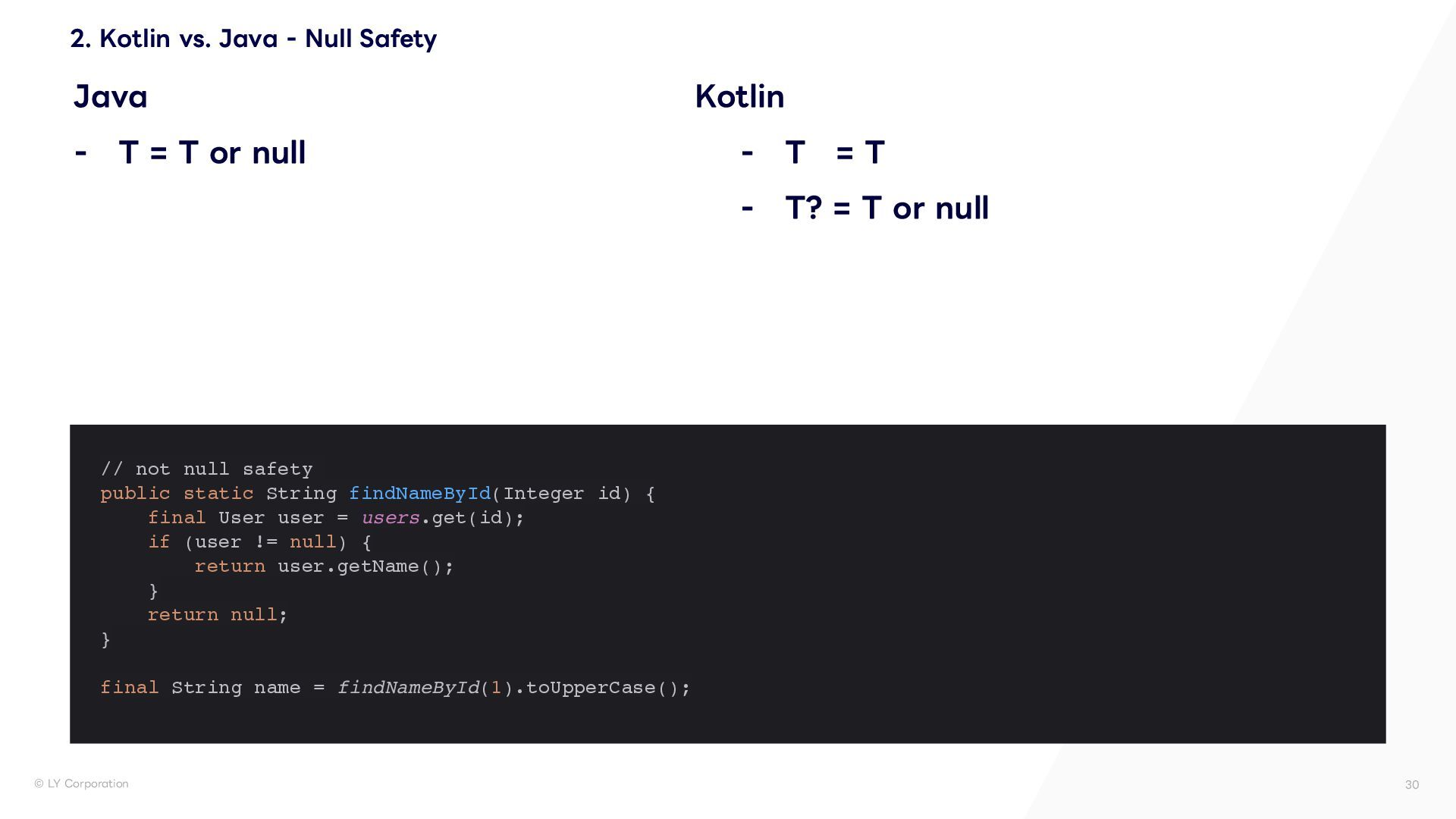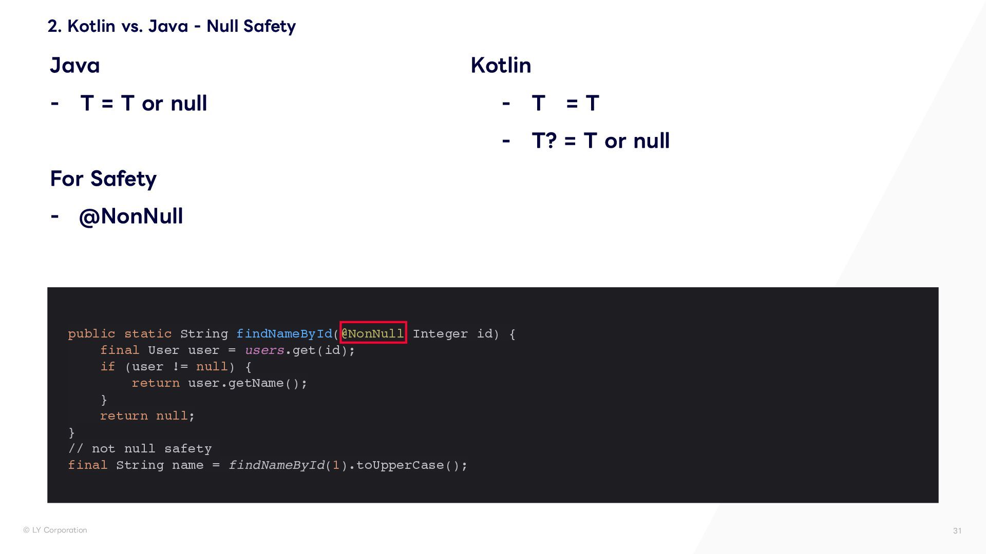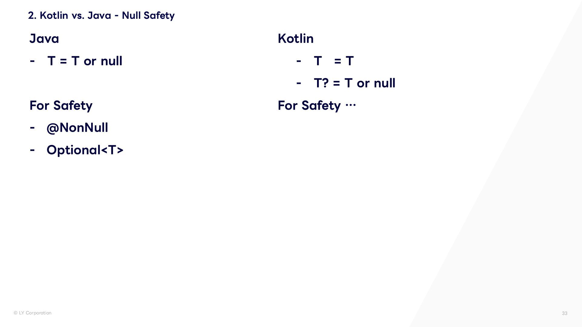name; Integer age; String address; String email; String phoneNumber; } final Person person = new Person( "1", “James Gosling", null, “Canada", null, null ); +BWB class Person ( val id: String, val name: String, val age: Int?, val address: String, val email: String?, val phoneNumber: String?, ) val person = Person( id = "2", name = "Andrey Breslav", age = null, address = “Russia", email = null, phoneNumber = null ) ,PUMJO 3FEVDFDPHOJUJWFMPBEJNQMFNFOUBUJPOFSSPST PSNJTUBLFT