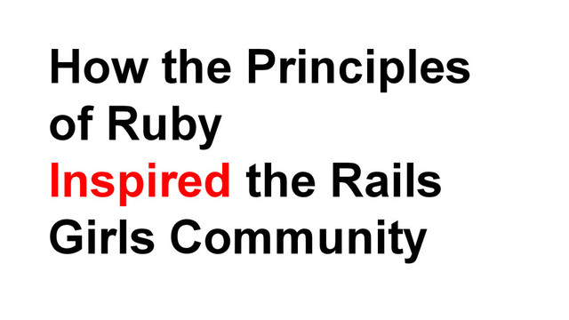Rails Girls started in Helsinki in 2010 with very humble beginnings. It’s now a community thriving in 180 cities around the world. Ruby and its community has influenced Rails Girls from the start and every step of the way. During our talk we’ll go through a history of Rails Girls, tell various anecdotes, and explore: