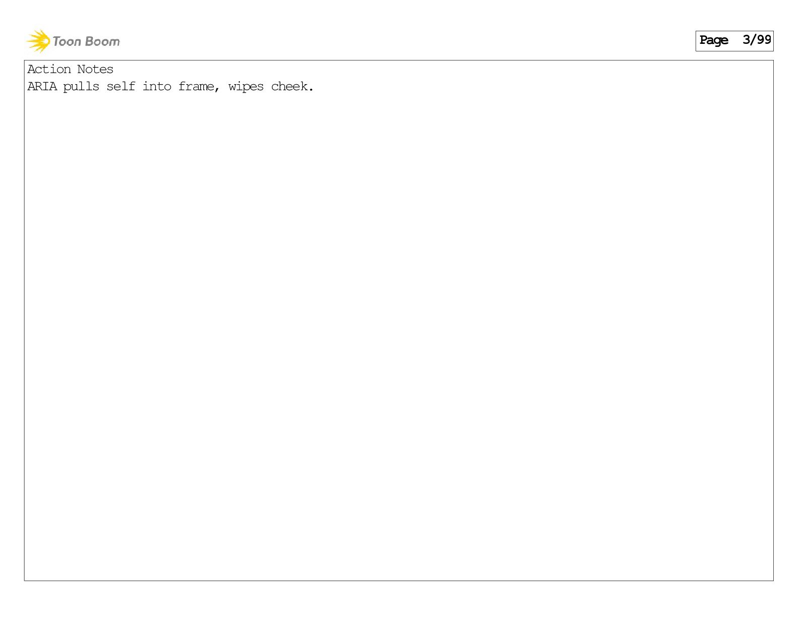 Action Notes ARIA pulls self into frame, wipes cheek. Page