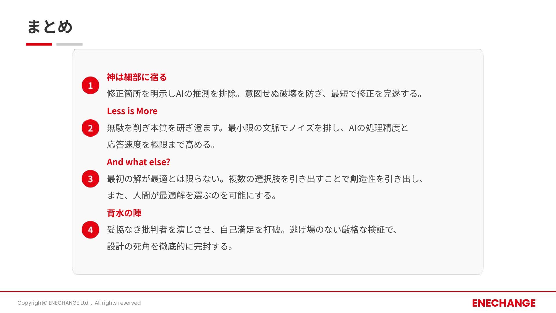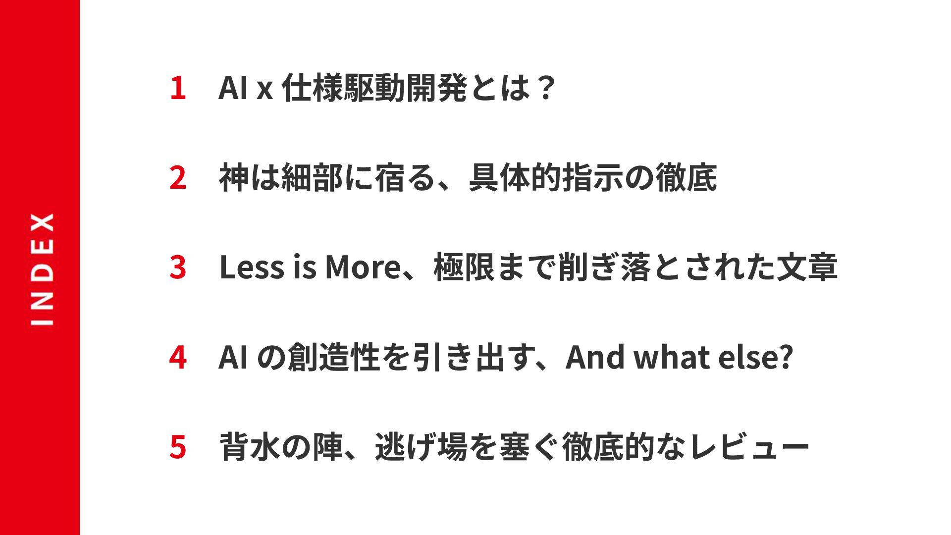 「AI×仕様書駆動開発」は開発プロセスを劇的に効率化しますが、プロダクトの品質を決定づけるのは、設計の洗練や実装時の微調整における「AIとの対話力」です。今回は巨匠たちの哲学をヒントに、意図を正確に伝え、高品質のアウトプットを高速で導き出すための実践的アプローチをご紹介します。