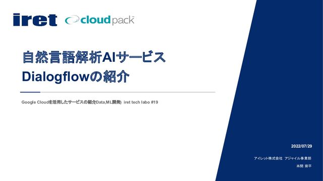 Google Cloudを活用したサービスの紹介 (Data,ML開発) iret tech labo #19 2022/07/29 アイレット株式会社 アジャイル事業部