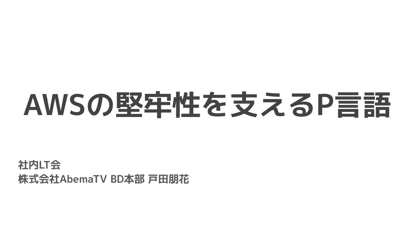 AWSの堅牢性を支えるP言語 社内LT会 株式会社AbemaTV BD本部 戸田朋花